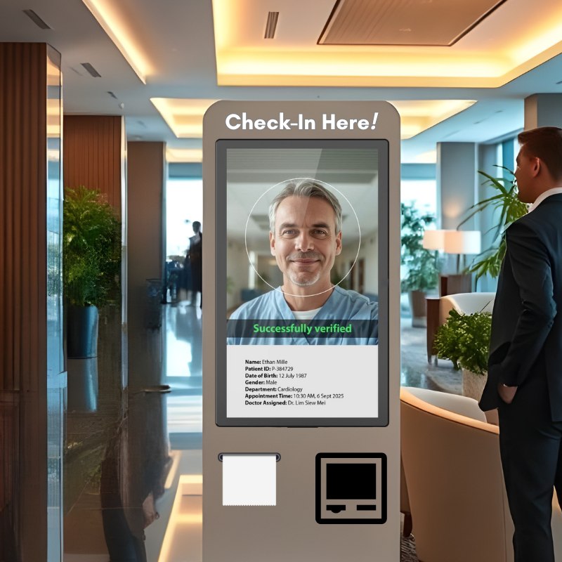 Smart patient check-in, wayfinding, predictive analytics, IoT-connected monitoring panels.