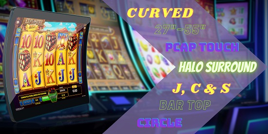 In fact, we are bringing 4 halo edge lit displays as our curved 43” J curved monitor also has a halo effect. A high-end statement piece for casino slot machines, entertainments kiosks, sports betting, lottery, bingo applications, and more.