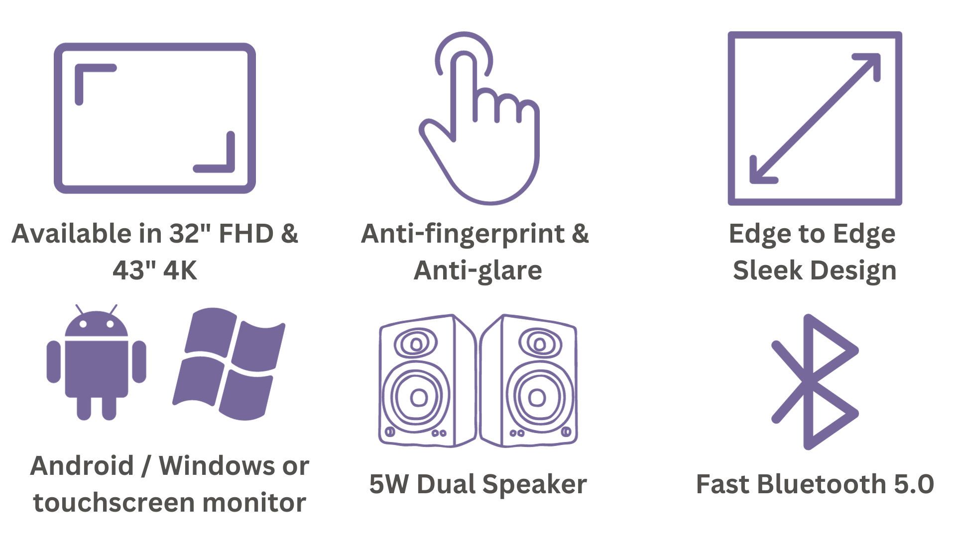 Glorystar’s Infinitus touchscreen signage displays represent the pinnacle of cutting-edge technology in the digital signage industry. By combining Glorystar’s innovative technology with CDS’s extensive knowledge and expertise in digital touchscreen solutions, the Infinitus range offers an unparalleled solution for all your touchscreen signage requirements. Whether you are looking to enhance customer engagement, provide interactive information, or create a captivating visual experience, the Infinitus displays are designed to meet the highest standards of performance and reliability, making them the ideal choice for your next digital signage project.