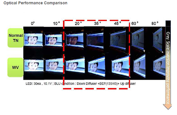 - Wide View Polariser Film added to increase standard viewing angles to (80/80/75/80) allowing a single display to be used in both “portrait” and “landscape” modes with no grey inversion.